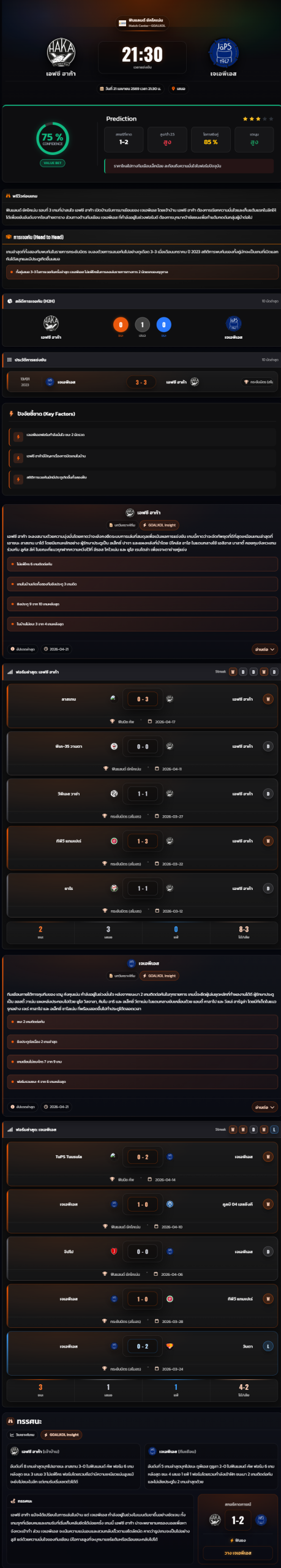 วิเคราะห์บอล [ ฟินแลนด์ ยัคโคเน่น 2025-26 ] เอฟซี ฮาก้า vs เจเอพีเอส admin เมษายน 21, 2026 วิเคราะห์บอลคืนนี้ / วิเคราะห์บอลวันนี้ / ทรรศนะฟุตบอลประจำวัน แนะแนวเรื่อง Previous Previous post: วิเคราะห์บอล [ แชมป์เปี้ยนชิพ อังกฤษ 2025-26 ] โคเวนทรี่ VS พอร์ทสมัธNext Next post: วิเคราะห์บอล [ เอเอฟซี แชมเปี้ยนส์ลีก อีลิท 2025-26 ] มาชิดา เซลเวีย vs อัล อาห์ลี ดูไบ