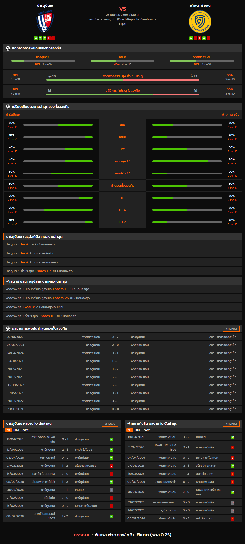วิเคราะห์บอล [ ลีกา 1 สาธารณรัฐเช็ก 2025-26 ] ปาร์ดูบีตเซ VS ฟาสตาฟ ซลิน admin เมษายน 25, 2026 วิเคราะห์บอลคืนนี้ / วิเคราะห์บอลวันนี้ / ทรรศนะฟุตบอลประจำวัน แนะแนวเรื่อง Previous Previous post: วิเคราะห์บอล [ ลีกา 1 สาธารณรัฐเช็ก 2025-26 ] เอฟซี โบฮีเมี่ยนส์ 1905 VS สปาร์ตาปราก