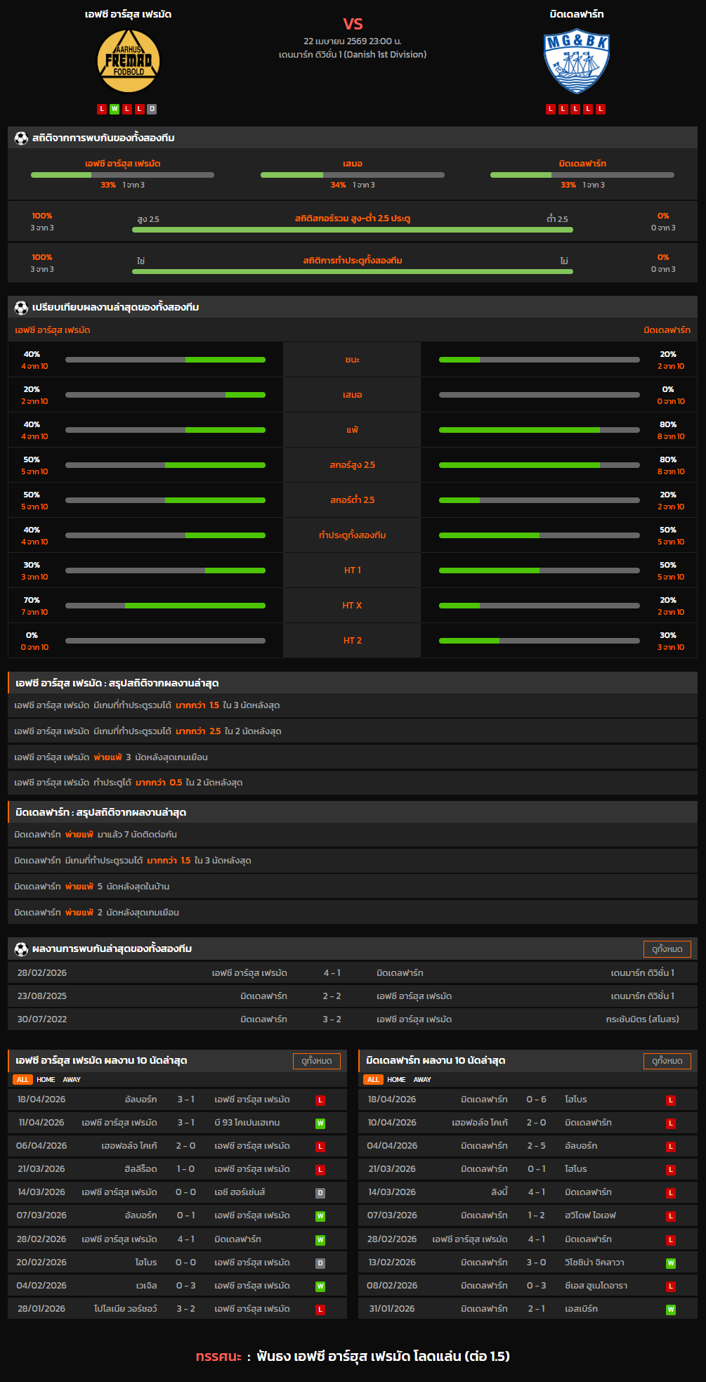 วิเคราะห์บอล [ เดนมาร์ก ดิวิชั่น 1 2025-26 ] เอฟซี อาร์ฮุส เฟรมัด VS มิดเดลฟาร์ท admin เมษายน 22, 2026 วิเคราะห์บอลคืนนี้ / วิเคราะห์บอลวันนี้ / ทรรศนะฟุตบอลประจำวัน แนะแนวเรื่อง Previous Previous post: วิเคราะห์บอล [ อเมริกา เมเจอร์ลีก 2026 ] นิวยอร์ก เร้ด บูลล์ส VS ดีซี ยูไนเต็ด