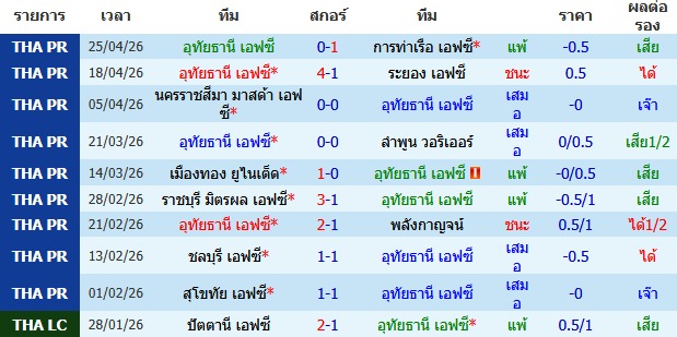 ผลงาน 10 นัดหลังสุดของทีม อุทัยธานี เอฟซี